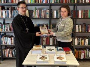 Вместе с историческими трудами священник вручил заведующей библиотекой сборник поучений святых отцов, подвижников благочестия и Священного Писания «Ларец мудрости духовной», «Духовное наследие» преподобного Варсонофия Оптинского и православный молитвослов.