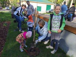 Собравшиеся пропели тропарь Пасхи и благочинный благословил доброе начинание. Под руководством директора детского сада Марии Абросимовой маленькие дошкольники вместе с родителями высаживали саженцы деревьев и кустарников.