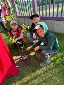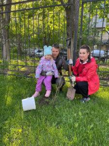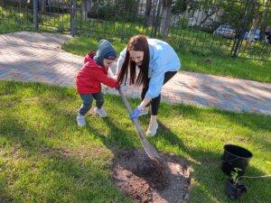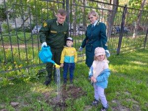 Сотрудники детского сада, воспитанники и их родители высадили деревья на территории дошкольного учреждения в память о погибших в годы Великой Отечественной войны.