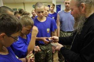 11 июля 2025 года помощник благочинного Приокского округа по взаимодействию с Вооруженными силами и правоохранительными органами протоиерей Виктор Поляков совершил молебен для воспитанников военно-патриотического лагеря «Хочу стать десантником» перед их первым прыжком с парашютом.