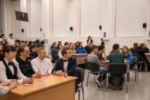 В 18:00 всё было готово 11 команд знатоков ( 1. Протвини 2. В кругу друзей 3. Ухеса 4. Скодорап 5. Прокрастинация 6. Нейрон 7. Каламбурим 8. Феназипан 9. А когда – никогда 10. Дети Пирогова) были в ожидании интеллектуального действа. Приветственное слово к собравшимся произнёс клирик Нижегородской епархии иерей Иоанн Евдокимов, ответственный за окормление ПИМУ и член Отдела по взаимодействию с высшей школой.