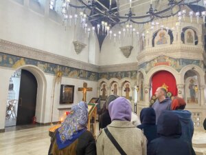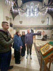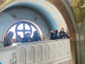Главным вопросом, который обсуждался в ходе экскурсии стал «что нужно сделать молодому человеку, чтобы стать священником», а также – какие степени священства есть в православной Церкви, что делают дьякон, откуда пошло названия иерей и пресвитер, кто такие чтецы, что такое хиротония и хиротесия.