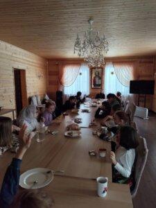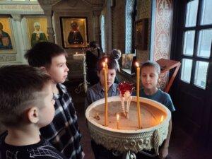 Настоятель храма иерей Антоний Требухин рассказал юным гостям о празднике Сретения Господня и его значении в жизни верующих, а также о том, как совершаются семь основных Таинств Русской Православной Церкви: Крещение, Миропомазание, Покаяние, Причащение, Брак, Священство и Елеосвящение. Отдельное внимание он уделил значению молитв, которые произносит священник в ходе совершения этих Таинств.
