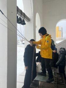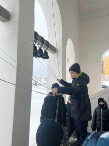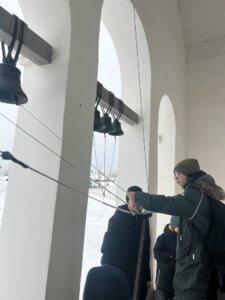 Особый интерес у ребят вызвало устройство храмовой колокольни. Настоятель храма объяснил им, что колокольня может состоять из нескольких ярусов, каждый из которых имеет своё назначение. Нижний ярус служит для размещения входа, а также используется для хранения инструментов и оборудования. На верхнем ярусе располагаются сами колокола, которые различаются по размеру и весу, и каждый из них имеет свой уникальный звук.