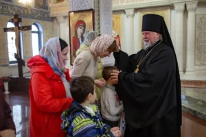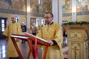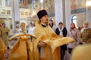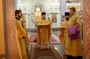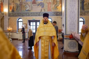 По запричастном стихе за литургией протоиерей Александр Литвиненко обратился к молящимся с проповедью.