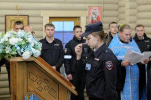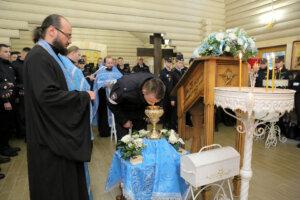 Для торжественной встречи святыни и совершения молебна в храме собрались курсанты и преподаватели академии. После участия в богослужении они приложились к ковчегу с частицей Ризы Пресвятой Богородицы.