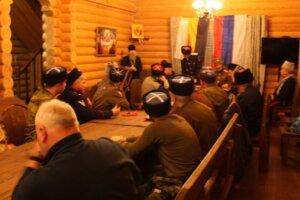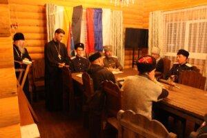 Перед началом собрания духовник организации иерей Иоанн Умарев совершил молебен по погибшему в ходе боевых действий на СВО казаку общины старшему уряднику Олегу Бесшапочному и другим воинам-казакам.