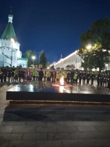 В богослужении вместе с волонтёрами приняли участие 45 курсантов Нижегородской академии МВД России. По окончании мероприятия состоялась патриотическая памятная акция «Свеча памяти» и возложение волонтёрами и курсантами цветов к Вечному огню в Кремле.
