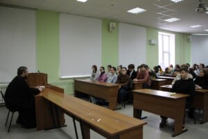 21 февраля помощник благочинного Приокского округа по образованию и катехизации протоиерей Александр Литвиненко провёл лекцию о религиозных войнах в истории человечества в Институте пищевых технологий и дизайна.