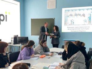 Юные агротеховцы прослушали лекцию куратора по миссионерской работе Приокского благочиния Строганова Дмитрия: “Влияние христианства на становление европейской культуры”. В начале занятия сотрудник епархии передал заведующей кафедры истории философии и права НГАТУ Ксения Кочнова книгу архимандрита Тихона (Затекина), посвященную расследованию ликвидации царской семьи и поблагодарил за сотрудничество в деле просвещения молодежи.