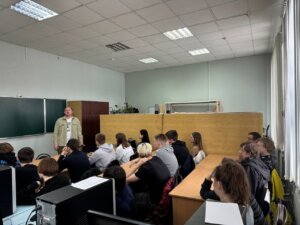 Студенты активно включились в диалог с лектором и задавали много вопросов куратору по миссионерской работе Приокского благочиния Строганову Дмитрию.