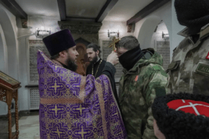«Совершить молитву перед началом благого дела, важного события всегда очень важно для казака. Каждый знает, что казак без веры, без Бога — не казак. Мы молимся за наших воинов покровителю всего воинства русского Георгию Победоносцу. Казаки знают об этом, и это придает им сил, уверенности и спокойствия», — сказал иерей Олег Карсаков.