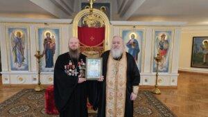 Почетную грамоту «За укрепление духовных и нравственных основ служения Отечеству и в связи с 30-летием священнического служения» от имени председателя Синодального отдела по взаимодействию с ВС и ПО митрополита Ставропольского и Невинномысского Кирилла священнослужителю вручил заместитель председателя этого отдела протоиерей Константин Татаринцев.