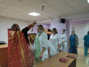 После окончания богослужения священнослужитель освятил шестое онкологическое и онкогинекологическое отделения, а также посетил все больничные палаты с лежачими пациентами, которые не смогли принять участие в молебне.