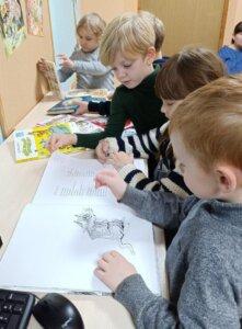 В ходе визита ребята познакомились с понятием книжной иллюстрации и изучили рисунки знаменитых художников-иллюстраторов Виктора Чижикова и Леонида Владимирского.