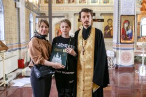 После богослужения иерей Антоний Требухин поздравил ребят и вручил им памятные подарки.