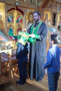 Перед Таинством клирик храма иерей Виталий Мишарин провёл с ребятами беседу, в ходе которой они узнали о том, что такое грех, какие заповеди дал Бог Моисею, и как мы можем врачевать наши души покаянием.