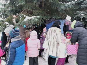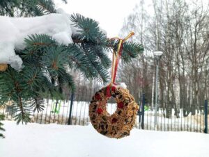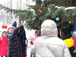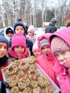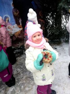 После праздника воспитанники воскресной школы и прихожане вместе с клириком храма иереем Кириллом Катиным украсили приходскую ёлочку на территории храма необычными игрушками-кормушками с угощением для птиц, сделанные своими руками.