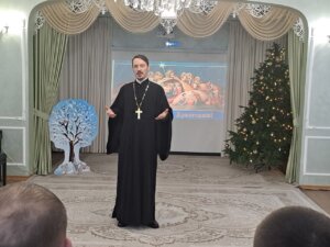 В приветственном слове духовник детского сада иерей Антоний Требухин поздравил детей и родителей с праздником Рождества Христова. Батюшка рассказал детям, что Рождество – это время, когда мы можем показать нашу любовь своим родным, друзьям и близким, помогать нуждающимся, пожелал юным воспитанникам не только становиться мудрыми в знаниях, но и оставаться чистыми душой, всегда сохранять в сердце радость праздника Рождества Христова. В заключение встречи отец Антоний подарил детям сладкие подарки.