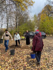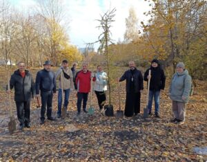 После Божественной Литургии жители района провели посадочные работы на специальном участке, где православные волонтёры и активисты заблаговременно выкопали ямы необходимых размеров.