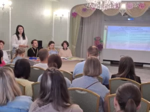 Заместитель директора по ВМР ознакомила родителей с образовательной программой ЧДОУ, разработанной с учетом ФОП ДО, а также с задачами и особенностями образовательной работы дошкольного учреждения на новый 2023/2024 учебный год. С комментариями по вопросу регламентации посещения родителями дошкольного учреждения в соответствии с современными требованиями законодательных актов Нижегородской области и Нижнего Новгорода выступила заместитель директора по АХР. Медицинская сестра озвучила перечень медико-профилактических мероприятий, которые запланированы на новый учебный год. В завершение мероприятия заместитель директора по ВМР рассказала про организацию платных образовательных услуг на 2023/2024 учебный год.