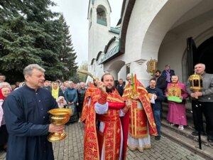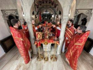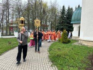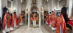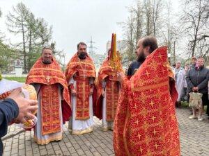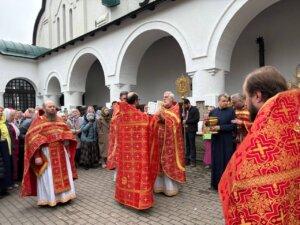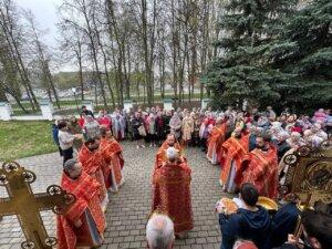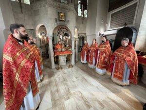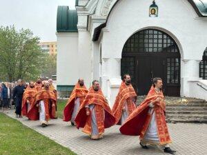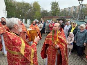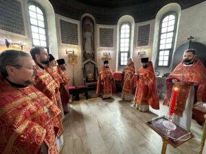 Богослужение возглавил благочинный Приокского округа иерей Олег Карсаков. Ему сослужили клирики храма в честь святого великомученика и целителя Пантелеимона протоиерей Святослав Кутковец, иерей Владимир Погодин, клирики храма в честь иконы Божией Матери «Взыскание погибших» протоиерей Виктор Поляков и иерей Алексей Лушенков, настоятель храма в Казанской иконы Божией Матери иерей Павел Нестеров, настоятель храма в честь святой блаженной Матроны Московской иерей Антоний Требухин и клирик этого храма иерей Иоанн Лапшин, настоятель храма в честь святителя Спиридона Тримифунтского (п. Новинки) протоиерей Сергий Сподинов, настоятель храма в честь святого равноапостольного великого князя Владимира иерей Роман Татаринов.