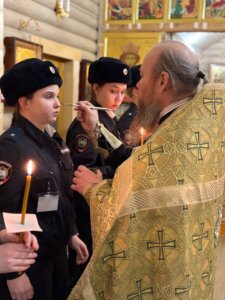 22 декабря 2025 года в храме в честь святого великомученика Георгия Победоносца Приокского благочиния состоялось Таинство Соборования для курсантов Нижегородской академии МВД России.