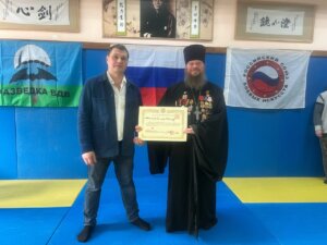 В завершение соревнований Александр Малышев вручил благодарственное письмо протоиерею Виктору Полякову, который три года духовно окормляет воспитанников центра единоборств, поблагодарил за помощь в развитии детско-юношеского спорта и духовно-нравственного воспитания подрастающего поколения.