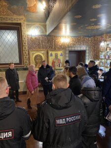 Вот и сейчас руководитель православной молодёжи Академии начальник кафедры конституционного и международного права полковник полиции Николай Трусов попросил руководителя молодёжного отдела Нижегородской епархии иерея Андрея Бандина провести экскурсию по храмовому комплексу Нижегородского кремля для курсантов Нижегородской академии и подшефных православного клуба студентов Приволжского филиала Российского государственного университета правосудия.