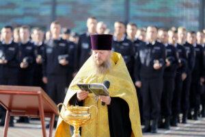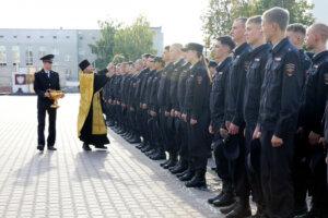 В Нижегородской академии МВД России протоиерей Виктор Поляков после обращения со словами наставления совершил молебен перед началом учебного года и окропил курсантов святой водой.