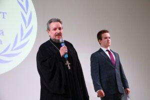 На актовом представлении Института пищевых технологий и дизайна, посвященном празднику 1 сентября с приветственными словами выступил клирик Приокского благочиния иерей Алексей Лушенков.