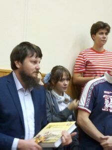 Перед собравшимися знатоками с приветственным словом выступил благочинный Приокского округа иерей Владимир Панин. Батюшка пожелал всем собравшимся удачи на игре и истинной мудрости, ведь любое размышление должно приводить человека к Богу. “Я мыслю, следовательно, я существую, а значит и существует творец, которого я могу помыслить!”