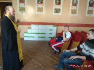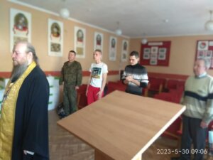 30 мая 2023 года в Приокском военкомате помощник благочинного по взаимодействию с Вооружёнными силами и правоохранительными органами протоиерей Виктор Поляков отслужил молебен перед отправкой призывников на воинскую службу.