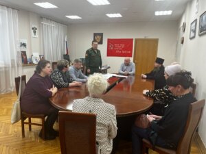 Глава администрации Приокского района Михаил Шатилов, начальник Приокского военкомата капитан в отставке Александр Лобанов и протоиерей Виктор Поляков встретились с родственниками героев, отдавших свою жизнь, защищая Родину в ходе специальной военной операции.