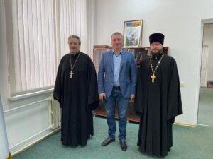 В ходе встречи благочинный Приокского округа иерей Олег Карсаков и иерей Алексий Лушенков обсудили с директором ИПТД Василием Козловым перспективы сотрудничества и план совместной работы.