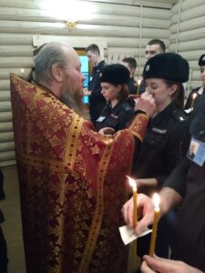В рамках реализации совместной программы в сфере духовно-нравственного просвещения личного состава академии духовник Вознесенского Печёрского монастыря игумен Вассиан (Бирагов) и ответственный за взаимодействие с Вооружёнными силами и правоохранительными органами протоиерей Виктор Поляков совершили Таинство соборования, в котором приняли участие более 100 курсантов, преподавателей академии, студентов и преподавателей Российского государственного университета правосудия, над которыми руководитель клуба православной молодёжи, начальник кафедры Конституционного и международного права полковник полиции Николай Трусов взял духовное шефство, приглашая студентов участвовать вместе с курсантами во всех мероприятиях, которые проводит молодёжный отдел Нижегородской епархии и Приокского благочиние.