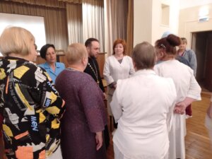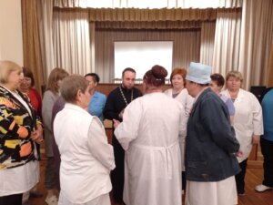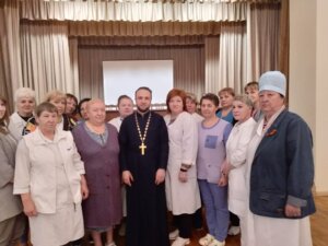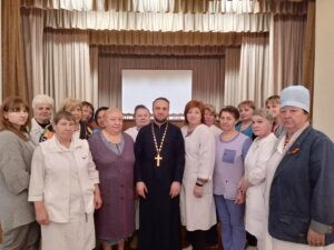 Медики пообщались со священником на духовные темы и задали интересующие их вопросы. В беседе батюшка рассказал о церковных праздниках, которые недавно мы чествовали, и что православные христиане должны неуклонно участвовать в жизни Церкви и в её Таинствах.