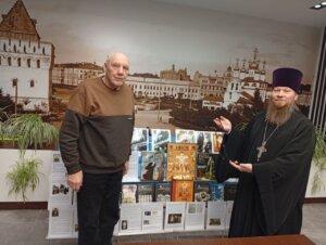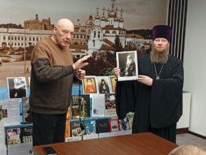 Он рассказал присутствующим историю Русской Православной Церкви 1917 по 1988 годы, отдельно останавливаясь на биографии и многогранной деятельности святителя Тихона, патриарха Московского и всея Руси и священномученика протоиерея Алексея Порфирьева. Также им на выставку были принесены святыни: чётки и часть священнического облачения священномученика.