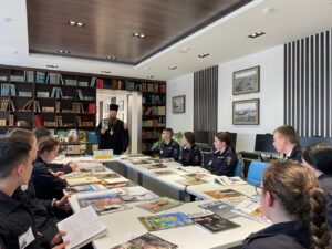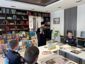 Выставка православной литературы будет работать неделю. В течение этого времени на ней планируются круглые столы, заседания православного молодёжного клуба, на которых курсанты будут знакомиться с православной литературой для подготовки к таинствам святого Причастия и соборования.