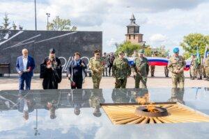 В заключение мероприятия участники почтили память погибших воинов минутой молчания, возложили цветы к мемориалу «Вечный огонь» и прошли торжественным маршем.