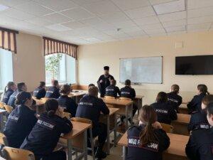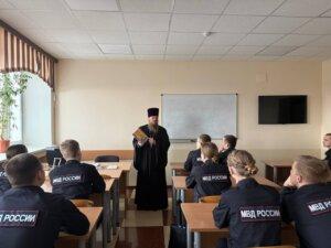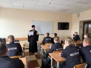 Священнослужитель также рассказал курсантам о значении Великого поста, познакомил с православной литературой, повествующей о правильной подготовке к таинствам исповеди, Причастия и соборования, которые состоятся в храме при академии.