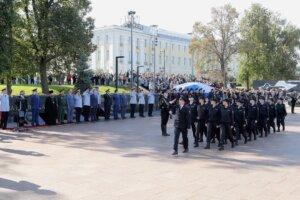 В завершение мероприятия первокурсники прошли торжественным маршем по аккомпанемент военного оркестра.